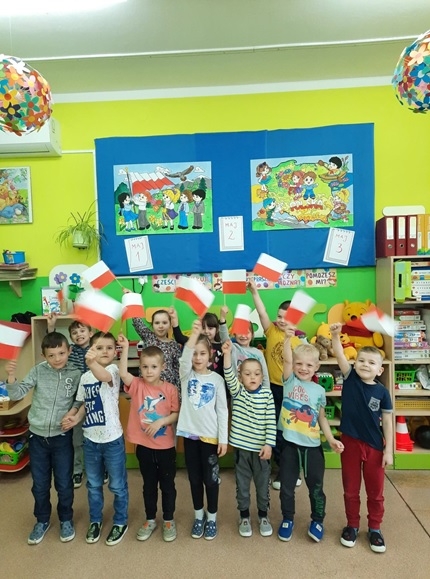 symboli narodowych: flagi, godła, hymnu. W tematykę Święta Flagi wprowadził dzieci