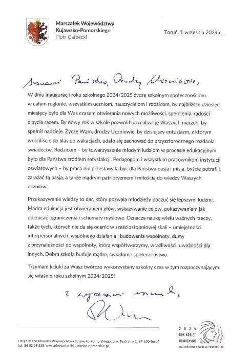 "Zdobywanie wiedzy to pasja, a nauka to interesująca przygoda". Rok szkolny 2023/2024 uważamy za otwarty.