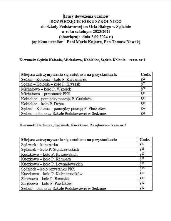 Rozkład zajęć lekcyjnych na rok szkolny 2023/2024 ( 2 semestr )